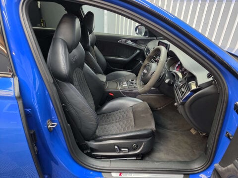 Introducing the Audi RS6 Avant – a masterpiece of engineering and design that promises to elevate your driving experience to unparalleled heights. This exceptional vehicle, with only three previous owners, is a testament to Audi's commitment to performance, luxury, and style. Finished in the exclusive Nogaro Blue, this RS6 Avant is a head-turner on any road. The striking hue is perfectly complemented by the red brake calipers and high-gloss black door mirror housings, creating a bold and sophisticated aesthetic. The gloss black styling package further enhances its dynamic presence, ensuring you make a statement wherever you go. Step inside, and you're greeted by a world of luxury and precision. The 3-spoke leather multi-function sports steering wheel is not only heated for your comfort but also designed to provide the ultimate driving control. The interior is adorned with Valcona leather and Alcantara in black, accentuated by exquisite blue stitching, offering a tactile and visual delight. The carbon inlays with blue weave add a touch of modern elegance, seamlessly blending with the overall design. Under the bonnet lies the heart of this beast – a 4.0 TFSI V8 engine that delivers an astonishing 605 PS. Paired with the Tiptronic transmission and Audi's renowned quattro all-wheel-drive system, the RS6 Avant offers a driving experience that is both exhilarating and refined. Whether you're navigating city streets or cruising on the open motorway, this estate delivers power and performance with effortless ease. The 21" performance wheels in gloss black not only enhance the vehicle's aggressive stance but also ensure superior handling and grip, making every journey a thrilling adventure. The Audi RS6 Avant is more than just a car; it's a statement of intent. It's for those who demand the best in performance, luxury, and style. Don't miss the opportunity to own this extraordinary vehicle. Experience the perfect blend of power and sophistication with the Audi RS6 Avant. Your journey awaits.Call now on 01582 249774